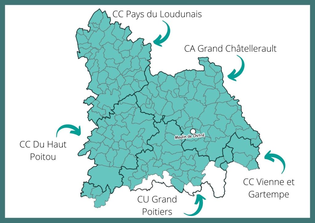 Liste des communes sur le territoire d’action du CPIE Seuil du Poitou, classées par EPCI (Etablissement Public de Coopération Intercommunale).