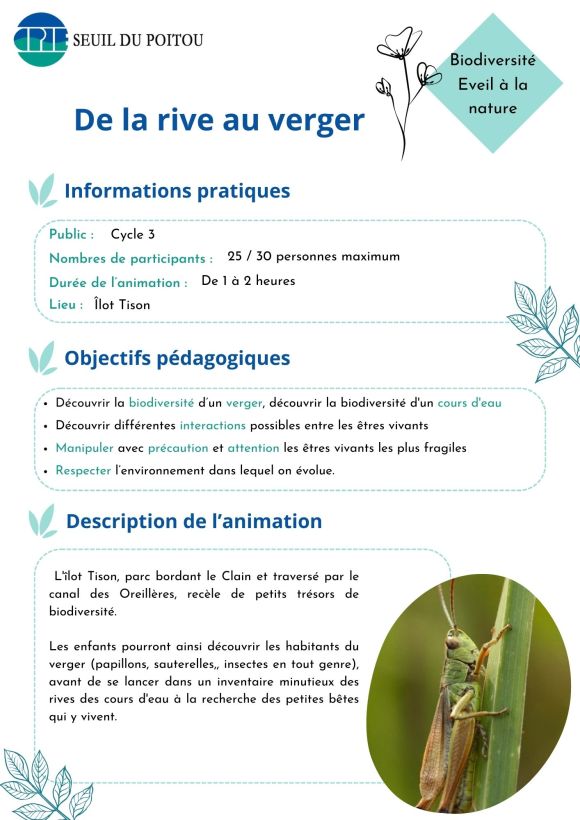 - Sortie nature (autour de l’école ou plus loin : Pinail, Espaces Naturels Sensibles…)