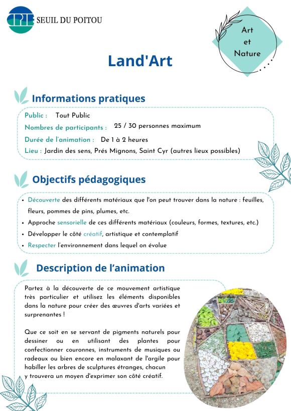 Quelques exemples d’animations sur la thématique de l’Art et la Nature…