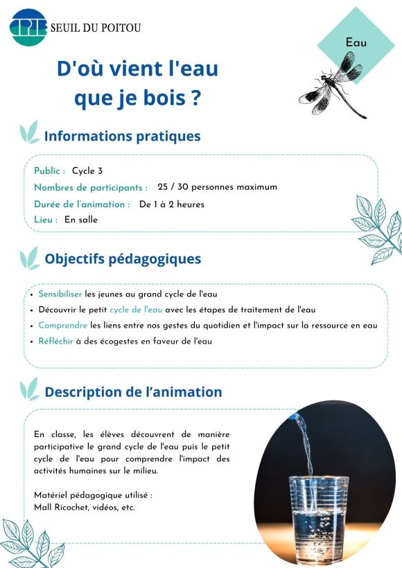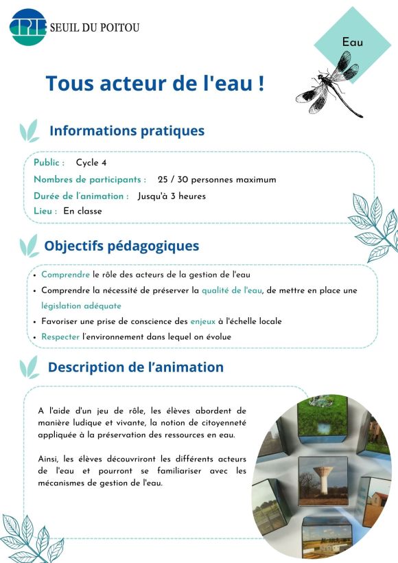 - Animation sur une thématique (recyclage, eau potable, biodiversité…)